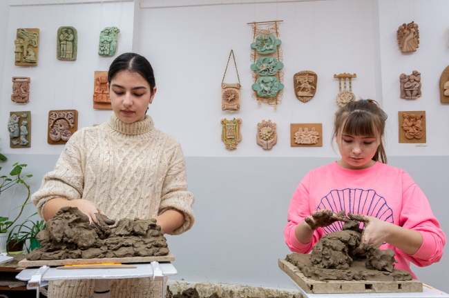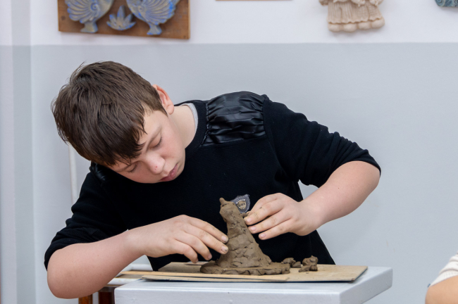 Сегодня одни ребята рисовали натюрморт, другие лепили сказочных героев и персонажей из басен. На это им давали по несколько академических уроков в зависимости от сложности задания.