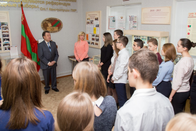Тирасполь, 2 февраля. /Новости Приднестровья/. В музее Центральной избирательной комиссии ПМР вот уже в 6 раз за 2018 год проводится экскурсия для старшеклассников. Сегодня с историей ЦИК учеников Тираспольской средней школы №18 знакомил почётный председатель центральной избирательной комиссии Пётр Денисенко.
