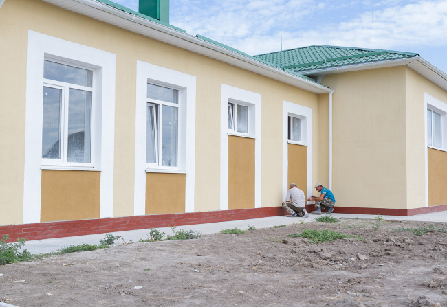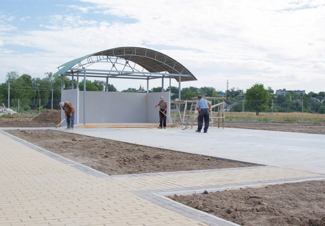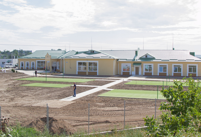 На стадии завершения находится и обустройство прилегающей территории. Заложено футбольное поле, волейбольная площадка, место под уличные тренажеры, теннисный стол и качели. Практически завершены прогулочные зоны и теневые навесы. Осенью и весной планируют также высадить деревья. Правительство окажет помощь в завершении этих работ.