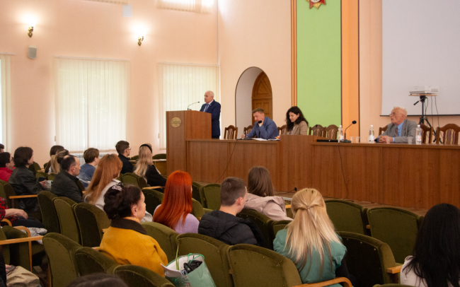Тирасполь, 24 апреля. /Новости Приднестровья/. В Приднестровском госуниверситете прошла встреча представителей и ветеранов Министерства государственной безопасности со студентами, сообщает пресс-центр вуза.