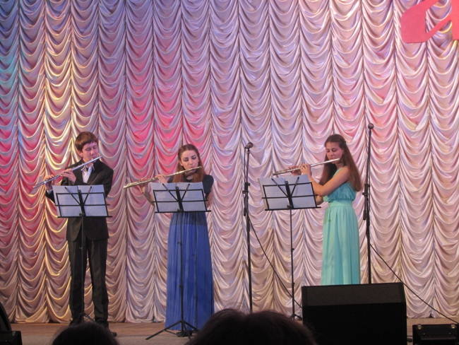 Открыло программу трио флейтистов сонатой Иоганна Кванца — класс Народного артиста ПМР Григория Мосейко. Одна из участниц коллектива — Ирина Каракаш лауреат 1-й премии Международного конкурса молодых исполнителей им. Златы Ткач, обладательница Гран-при VI конкурса «Виртуозы русской музыки» (Молдова).