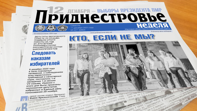 Тирасполь, 10 декабря. /Новости Приднестровья/. В субботнем номере республиканской газеты «Приднестровье» расскажут, почему важно принять участие в выборах Президента ПМР. На страницах издания также затронут темы подготовки к празднованию Нового года, развития добровольческого движения в Григориополе и поведают о том, как оставаться здоровым в зимнее время.
