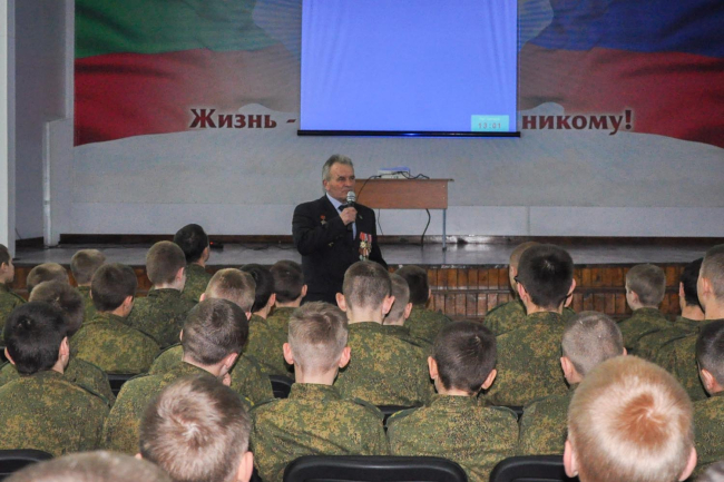 Затем с молодыми суворовцами пообщался Игорь Буга, он рассказал ребятам о причинах начала той войны и о своём боевом пути в горах Афганистана.