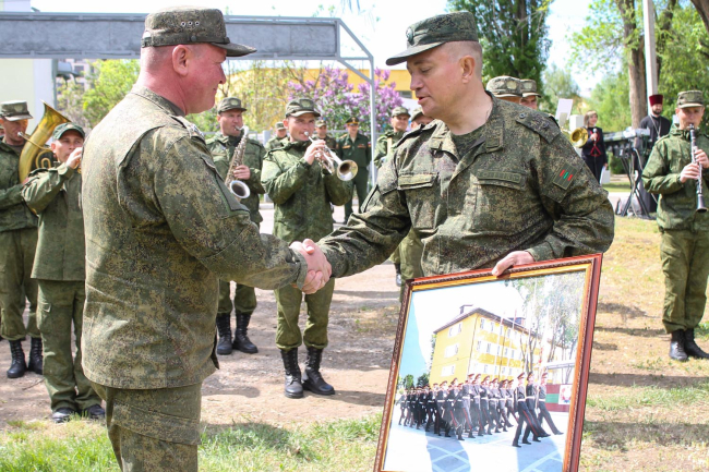 С наступающим праздником Победы суворовцев поздравили начальник Оперативной группы российских войск в Приднестровье полковник Дмитрий Зеленков, начальник Тираспольского Суворовского военного училища майор Сергей Александров и войсковой священник отец Максим.