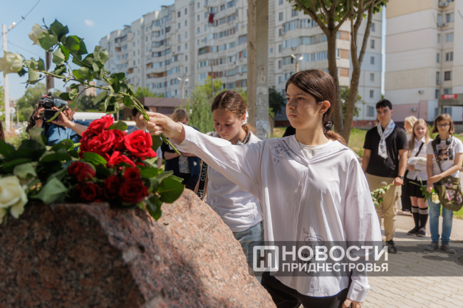 Тираспольчане возложили цветы к памятному камню Михаилу Ларионову