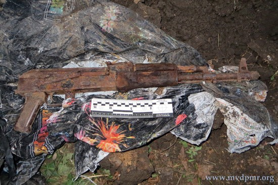 Как сообщает пресс-служба МВД ПМР, выехавшая на место происшествия следственно-оперативная группа изъяла АК с признаками коррозии. Домовладелец рассказал, что данное оружие было зарыто на глубине около 40 см. В ходе разбирательства установлено, что новые хозяева купили дом 2 года назад. Ранее земельные работы на данном участке они не проводили.