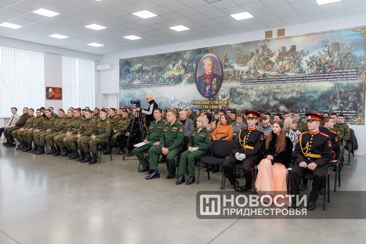 По традиции в начале торжественного мероприятия суворовцы исполнили гимн Приднестровья. После офицеры и суворовцы возложили цветы к бюсту легендарного полководца Александра Суворова.