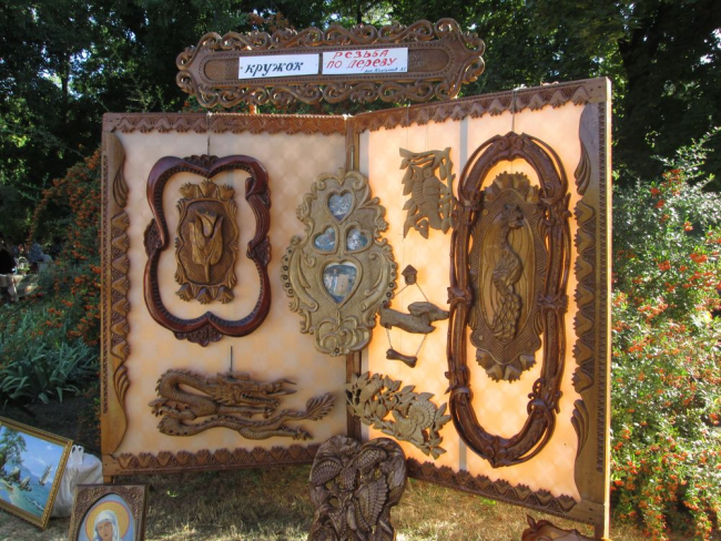 В сквере Ленинского комсомола открылась выставка сувенирной продукции: там пестрят самые разнообразные предметы декоративно-прикладного искусства, скрапбукинга, живописи, плетения, и цветоделия.