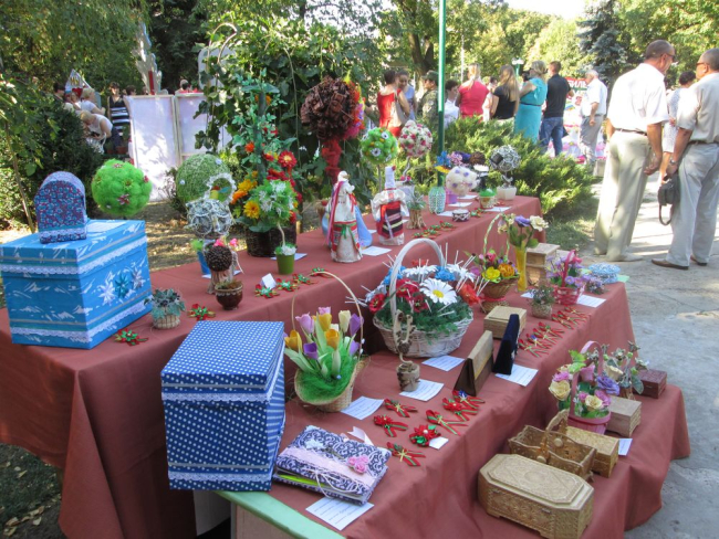 02 Сен., 2015, 14:09На площади Освобождения для жителей открылись ярмарочные подворья и выставки творческих коллективов Дворца детско-юношеского творчества, на которых представлены поделки в самых разнообразных техниках: глиняные изделия, модели судов, резьба по дереву, вышивки, рисунки и многое другое. Огромным каравем весом почти в 200 кг порадовали жителей бендерские пекари, не остались в стороне и производители пива - они организовали целую выставку пивной продукции.