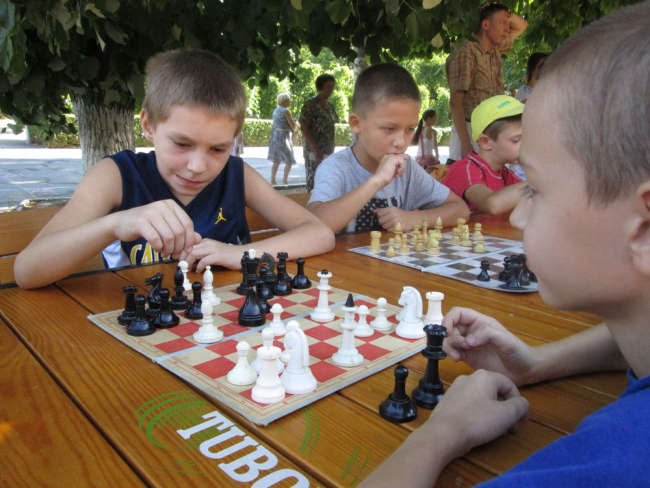 Развлечением не только для глаз, но и для ума заняты юные шахматисты под каштанами у кинотеатра им. Горького. Два десятка школьников расположились в тени деревьев, чтобы обыграть соседа в очередной партии.