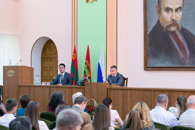 23 Май., 2019, 20:06Тирасполь, 23 мая. /Новости Приднестровья/. Президент ПМР Вадим Красносельский встретился с профессорско-преподавательским составом и студентами Приднестровского госуниверситета им. Т. Г. Шевченко.