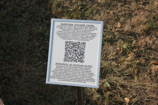 Бендеры, 5 сентября. /Новости Приднестровья/. У одного из символов города Бендеры – памятника Русской Славы – появился первый туристический указатель с QR-кодом и краткой историей памятника на русском и английском языках. Считав QR-код с помощью мобильного телефона, можно будет получить подробную информацию о достопримечательности, сообщается на сайте местной госадминистрации.