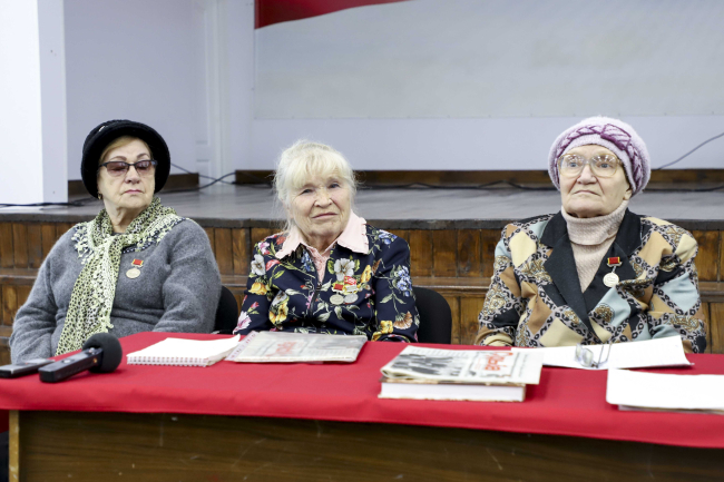 На встречу с учащимися Суворовского училища пригласили бывших узников фашистских концлагерей – Людмилу Божонку, Екатерину Малюту, Владимира Головашова и председателя Общества бывших узников фашизма Тирасполя Татьяну Поято.