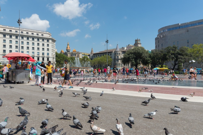 Раньше традиция кормления голубей была распространена по всей Барселоне, но постепенно в разных местах вводились запреты, и она сохранилась только на площади Каталонии.