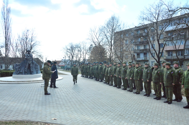 Торжественное построение состоялось у памятника миротворцам возле ДК им. Ткаченко