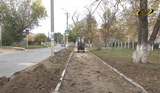 Сейчас дорожники работают на улице Тамары Кручок: покрывают тротуар новым асфальтом, меняют бордюры, делают карман для остановки маршруток.