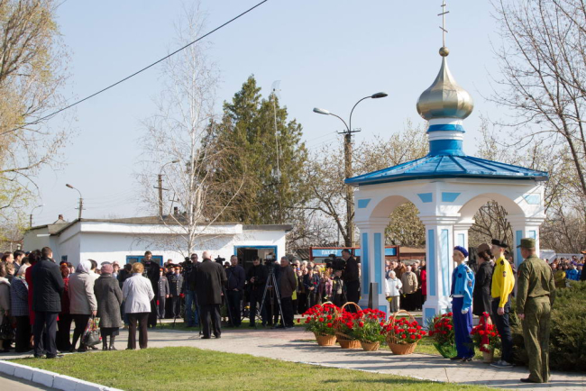 Затем у часовни по улице Ечина состоялся митинг и возложение цветов. Участие в нём приняли президент Вадим Красносельский, спикер Верховного Совета Александр Щерба, первый президент Приднестровья Игорь Смирнов, руководители министерств и ведомств, парламентарии.