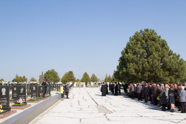 Далее делегация направилась на Борисовское кладбище, где на Аллее Славы состоялась лития в память о погибших в апреле 1992 года. Завершилось мероприятие возложением цветов к могилам павших.