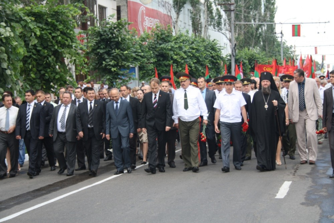 Сегодня с раннего утра на центральную площадь Бендер почтить память погибших пришли руководство Приднестровской Молдавской Республики и города Бендеры, члены делегации представителей в Объединённой контрольной комиссии от Приднестровья, командование российского и приднестровского контингентов из состава совместных миротворческих сил, защитники Приднестровья, граждане и гости города. Именно отсюда началось траурное шествие участников митинга к Мемориалу Памяти и Скорби.