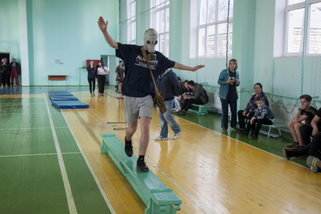 В военно-прикладной эстафете школьники преодолевали импровизированную полосу препятствий в противогазе, переносили «раненых», оказывали им первую медицинскую помощь и снаряжали автоматные магазины патронами. А настоящую битву на миникортах можно было наблюдать в финале соревнований по настольному теннису.
