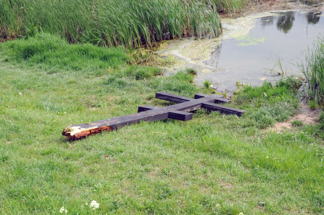 Как выяснилось, это был Поклонный крест, установленный неподалёку, при въезде в Бендеры со стороны Кишинёва возле городского храма. Вандалы сломали его, перетащили через дорогу и кинули в озеро.