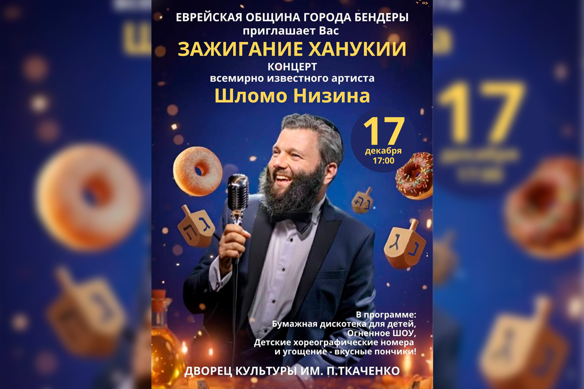 Официальная часть праздника с концертом состоится в среду, 17 декабря, в 17:00 в ДК им. П. Ткаченко. В программе – огненное шоу, развлечения для детей, выступление вокалиста Шломо Низина и угощения для всех посетителей.