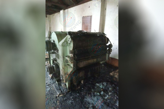 Причиной ЧП стало нарушение технологического процесса. В результате попадания инородного тела на кольчатый вал образовалась искра, которая повлекла за собой воспламенение наполнителя.