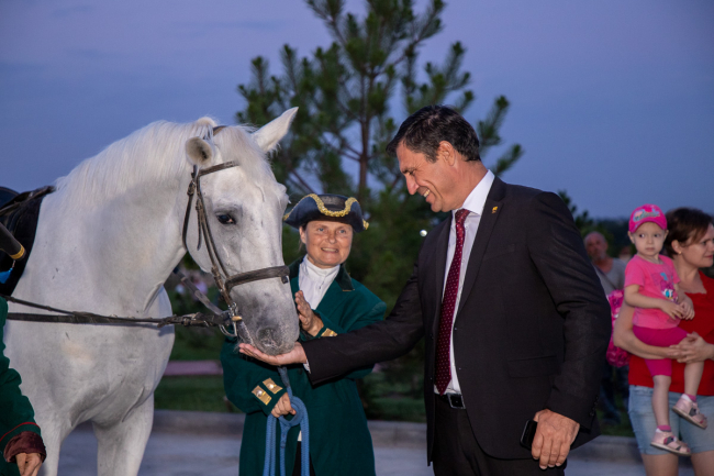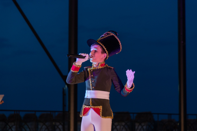 Полковой бал, начавшийся у памятника Александру Невскому, ознаменовал начало концертной программы. На главной сцене парка выступили лучшие вокальные и танцевальные коллективы города.