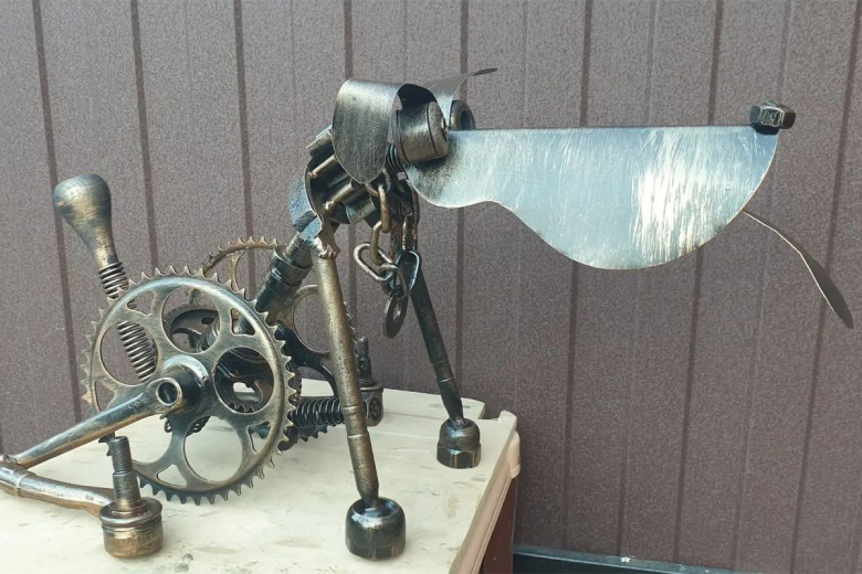 Все они сделаны из ненужных деталей от мотоциклов и велосипедов. Когда-то это было увлечение только президента клуба. Сейчас к созданию металлических поделок подключаются все.