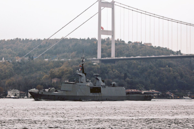 20 Ноя.., 2017, 10:41Ракетный «фрегат-невидимка» ВМС Франции класса La Fayette вошел в акваторию Черного моря. Как сообщает РИА «Новости», информация и фотографии появились на странице микроблога Twitter турецких споттеров, отслеживающих пути движения военных кораблей через Босфор.