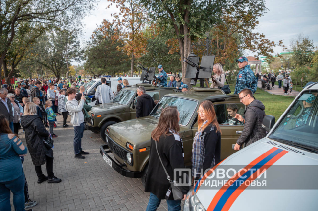 Показали свою технику и представители милицейского спецназа (это их «Нивы» с пулемётами на крыше) и аварийно-спасательного отряда.