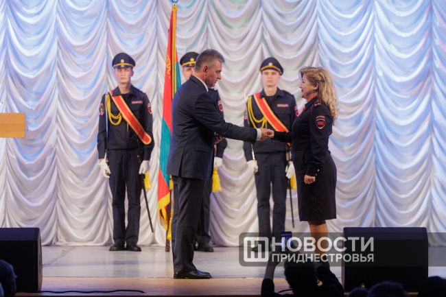 Со сцены присутствующих с профессиональным праздником поздравил Президент ПМР Вадим Красносельский. Он подчеркнул, что основой формирования приднестровских органов внутренних дел стала советская милиция.