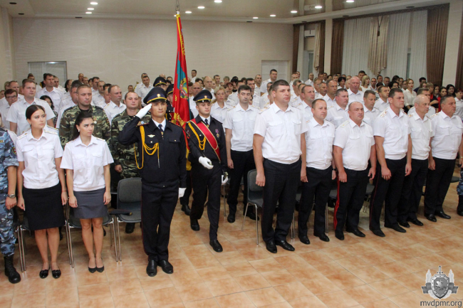 Сегодня же торжественное совещание, посвящённое 28-й годовщине образования Приднестровья, прошло и в УВД Тирасполя. Ряду сотрудников, добившихся высоких результатов в служебной деятельности, были присвоены внеочередные специальные звания, вручены почётные грамоты.