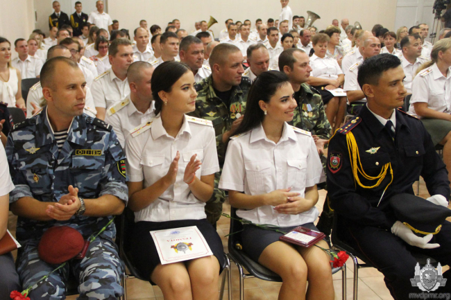 Он поздравил сотрудников ведомства с предстоящим праздником, особо отличившимся вручил государственные и ведомственные награды. Среди них – начальник Тираспольского юридического института им. М.И. Кутузова Иван Майдановский. 15 июля в акватории Кучурганского водохранилища он спас из воды тонувшего гражданина. Майор милиции был награждён медалью «За спасение утопающего».