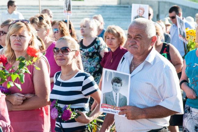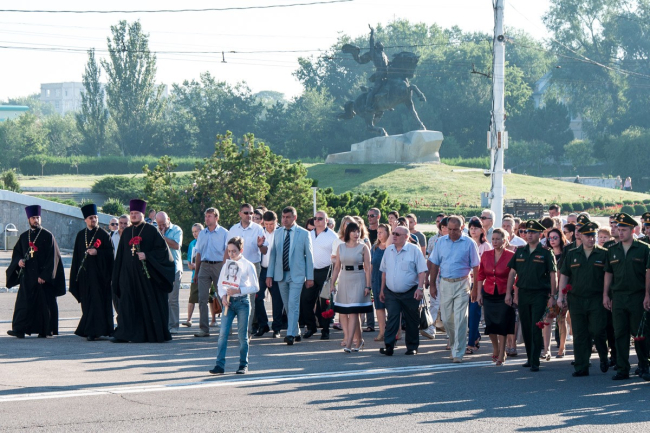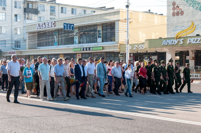 Тирасполь, 1 августа. / Новости Приднестровья/. 1 августа — День памяти и скорби по погибшим и умершим от ран защитникам Приднестровья. В этот день колонна «Бессмертного полка» с фотографиями героев в руках прошлась по главной улице Тирасполя.