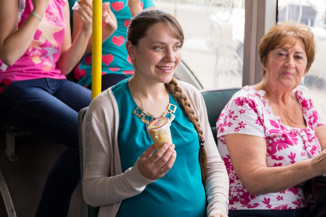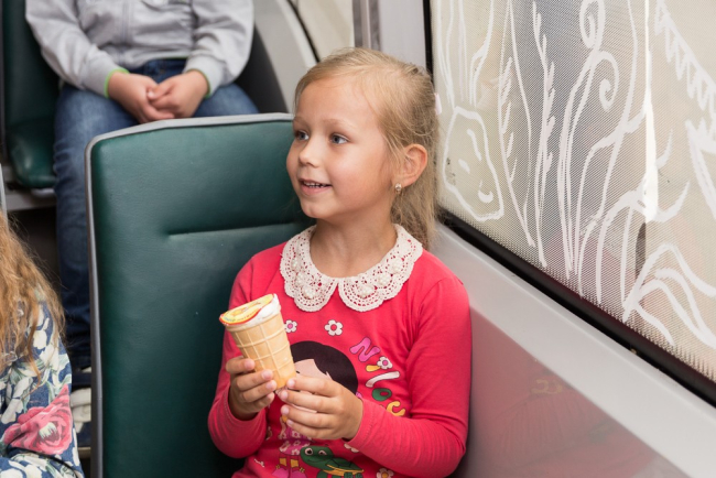 Главными пассажирами чудо-троллейбуса стали, конечно, дети. Каждому из них артисты Дворца детско-юношеского творчества вручили мороженое и поздравили с праздником.
