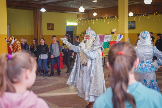 По традиции в гости к ребятам пришли Дед Мороз, Снегурочка и символ нового года – Тигр. Дети пели, танцевали, участвовали в веселых конкурсах и водили хороводы. Завершился праздничный вечер сладкими подарками.