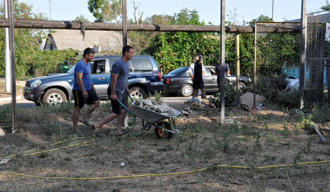 Площадка здесь была и раньше, но находилась она в аварийном состоянии. Теперь же место для игры в волейбол и футбол полностью реконструируют.