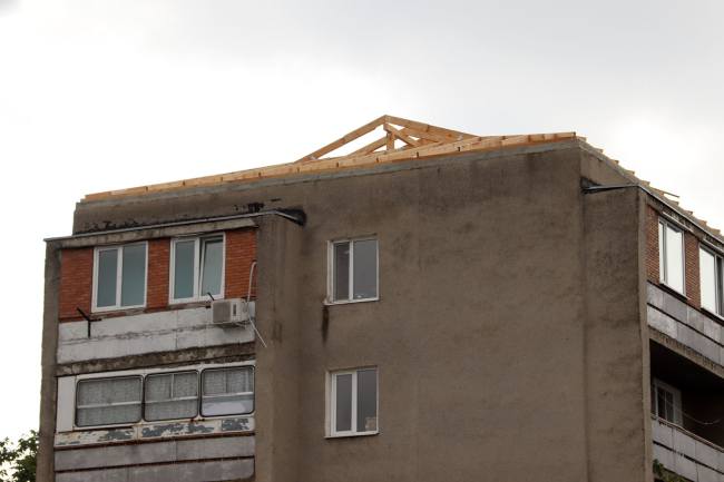 В Дубоссарах на одном из многоэтажных домов устанавливают новую шатровую кровлю