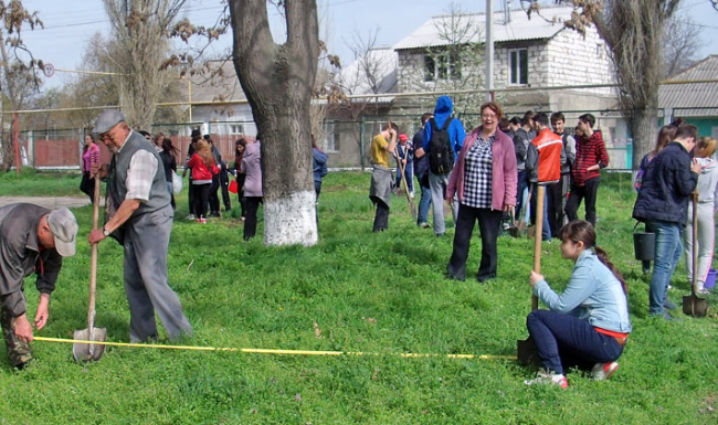 В минувшие выходные в сквере управления народного образования члены общественных организаций совместно с учащимися гимназии высадили саженцы вишни, черешни, клена и ореха, сообщает пресс-служба местной госадминистрации.