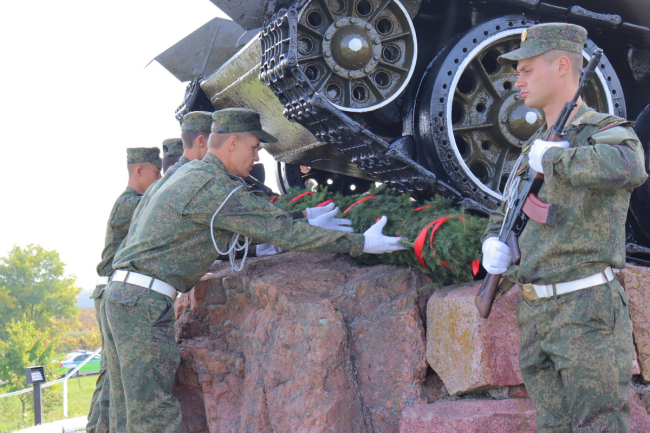 Память героев-танкистов почтили минутой молчания. Затем под оружейный залп к танку Т-34 собравшиеся возложили цветы к мемориальной плите у Кургана Славы. Также для всех участников мероприятия по традиции была организована полевая кухня.