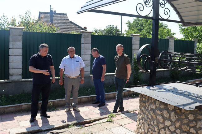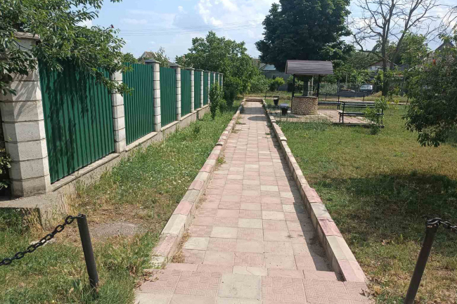 Рядом с остановкой расположен поклонный крест, который местные жители сами соорудили и облагородили. Рядом расположен колодец. Участники совещания осмотрели территорию. Руслан Чабан поручил благоустроить это место, восстановить бордюр и тротуарную плитку вокруг колодца.