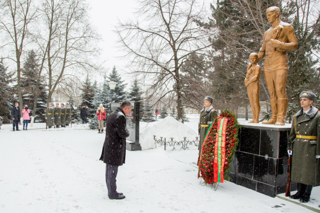 02 Мар., 2018, 15:27Дубоссары, 2 марта. /Новости Приднестровья/. Сегодня, в день 26-й годовщины начала широкомасштабной агрессии Молдовы против Приднестровья, в Дубоссарах на городском Мемориале Воинской Славы прошёл траурный митинг. В нем приняли участие Президент ПМР Вадим Красносельский, председатель Верховного Совета Александр Щерба, члены Правительства, руководители министерств и ведомств, руководство Дубоссарского района, защитники Приднестровья, представители общественных организаций, жители города и района.