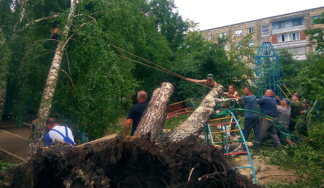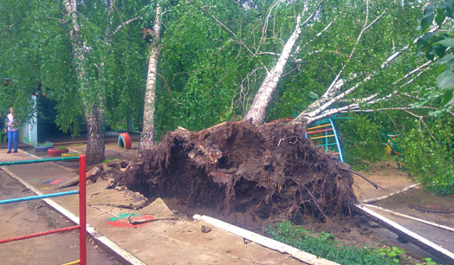 В городе и селе Дзержинское сильный ветер вырывал деревья с корнями, повреждены кровли в частных домах и учреждениях