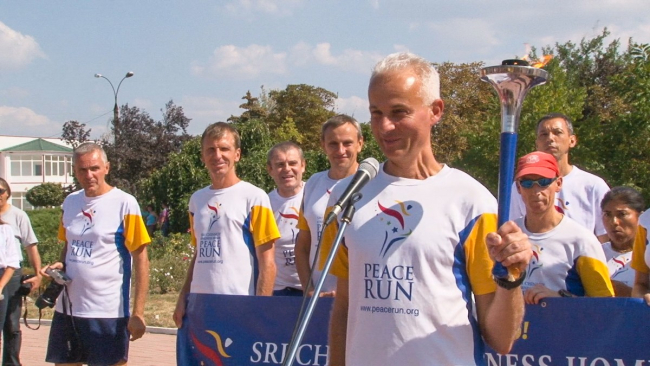 Дубоссары, 13 сентября. /ИА «Новости Приднестровья"/. Город Дубоссары стал первым городом Приднестровья, который принял участников международной эстафеты «Бег мира». Зарубежные гости в нашей республике впервые. Они являются участниками международной факельной эстафеты, которая стартовала в начале этого года в Португалии. Ее основателем стал индийский философ, писатель и общественный деятель Шри Чинмой. Впервые кругосветный пробег с участием профессиональных спортсменов и волонтеров состоялся в 1987 году. Автор идеи считал, что через спорт, общение и дружбу люди всех стран мира могут объединяться и достигать гармонии и единства.