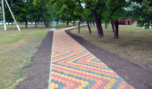 Там уже появились разноцветный плиточный тротуар, новые скамейки и детская площадка