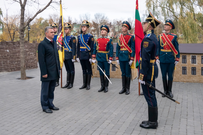 У РПК сегодня двойной праздник. Подразделение было создано 6 ноября 1997 года. За 24 года службу в нем прошли больше двух тысяч призывников. Ни одно государственное мероприятие сейчас не обходится без участия военнослужащих РПК. Визитная карточка подразделения – плац-парад. О связи поколений защитников Отечества, сохранении и продолжении лучших традиций русского воинства, а также о почтении, с которым приднестровцы относятся к прошлому своей страны, говорил в своем выступлении Президент ПМР Вадим Красносельский. Глава государства напомнил имена основателей Тирасполя и великих полководцев, сыгравших немаловажную роль в истории города. Остановился на вкладе каждого из полков, память о которых воплощена в открытых сегодня знаках.