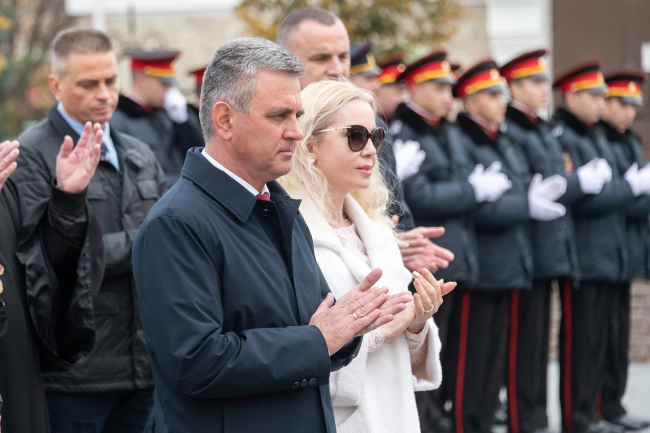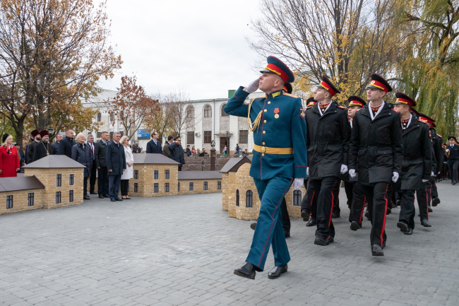Как сообщает президентская пресс-служба, за происходящим наблюдали курсанты Тираспольского юридического института и Военного института Минобороны. В церемонии были задействованы юные потомки русских воинов – приднестровские суворовцы и кадеты, а также военнослужащие роты Почетного караула.