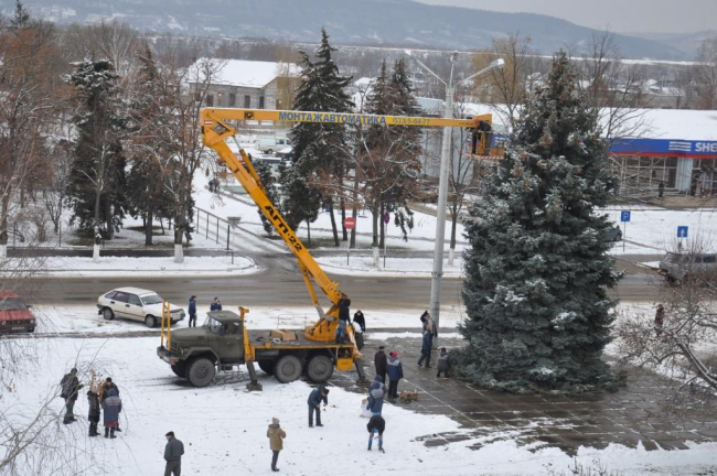 Каменка, 15 декабря. /ИА «Новости Приднестровья»/. Уже традиционно в преддверии Нового года каменчане наряжают живую ель, которая растет на центральной городской площади и отличается особой пышностью и красотой.