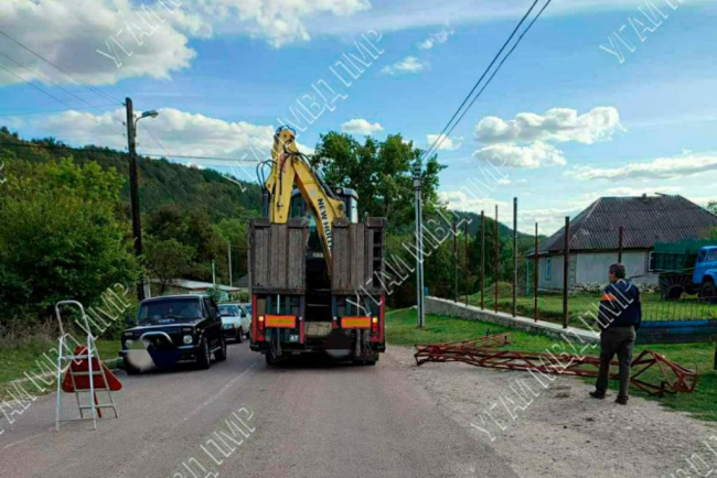 Как сообщает пресс-центр МВД ПМР, в Севериновке в местной школе идут ремонтные работы. Мужчина за рулём тягача SCANIA перевозил туда тяжёлую стройтехнику: бетономешалку и погрузчик. Через дорогу на одном из участков проходит газовая труба. На ней установлен дорожный знак, предупреждающий об ограничении высоты для габаритных транспортных средств.